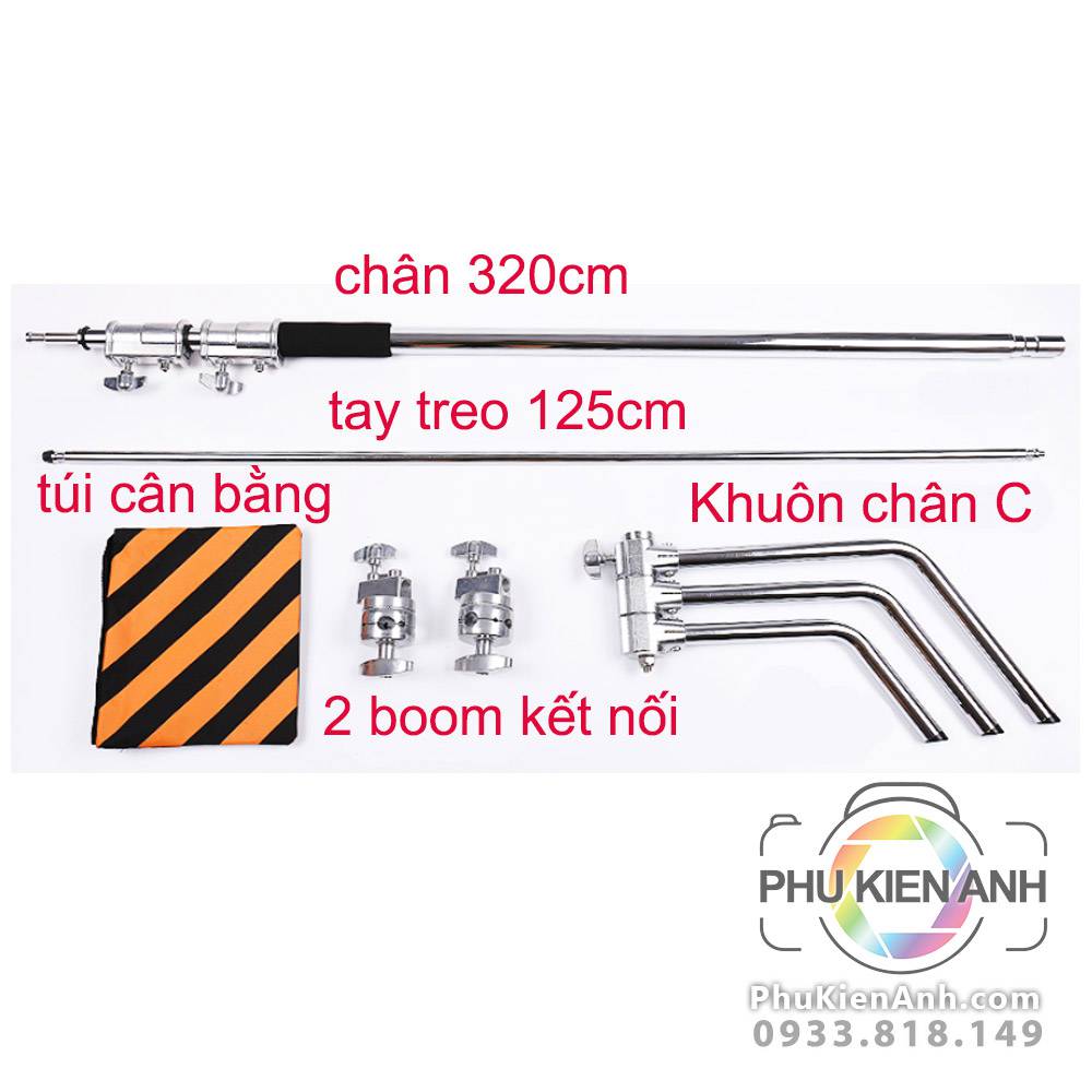 Chân đèn boom Light Stand C inox cao cấp 320 cm chụi tải 20kg. Đây là dòng cao cấp dành cho việc treo đỡ nặng như flash , beautydisk, softbox khổ lớn …