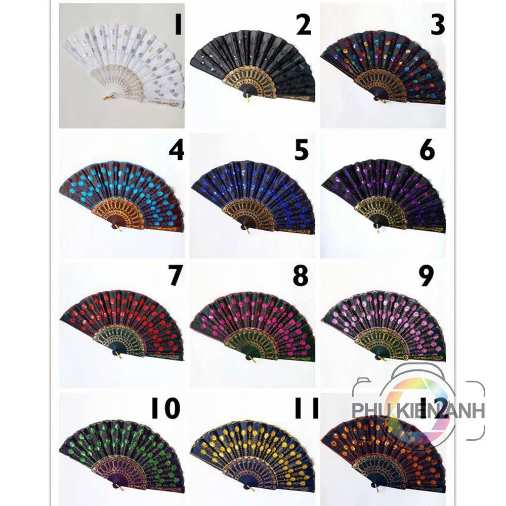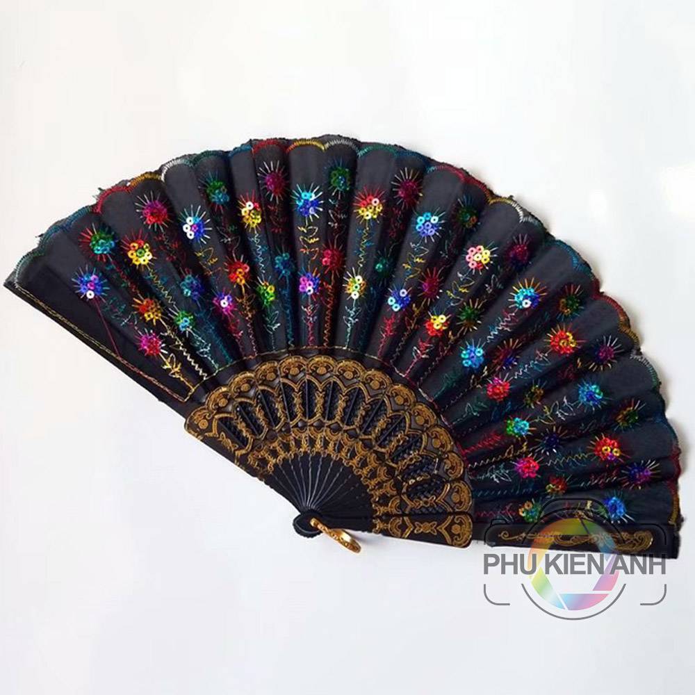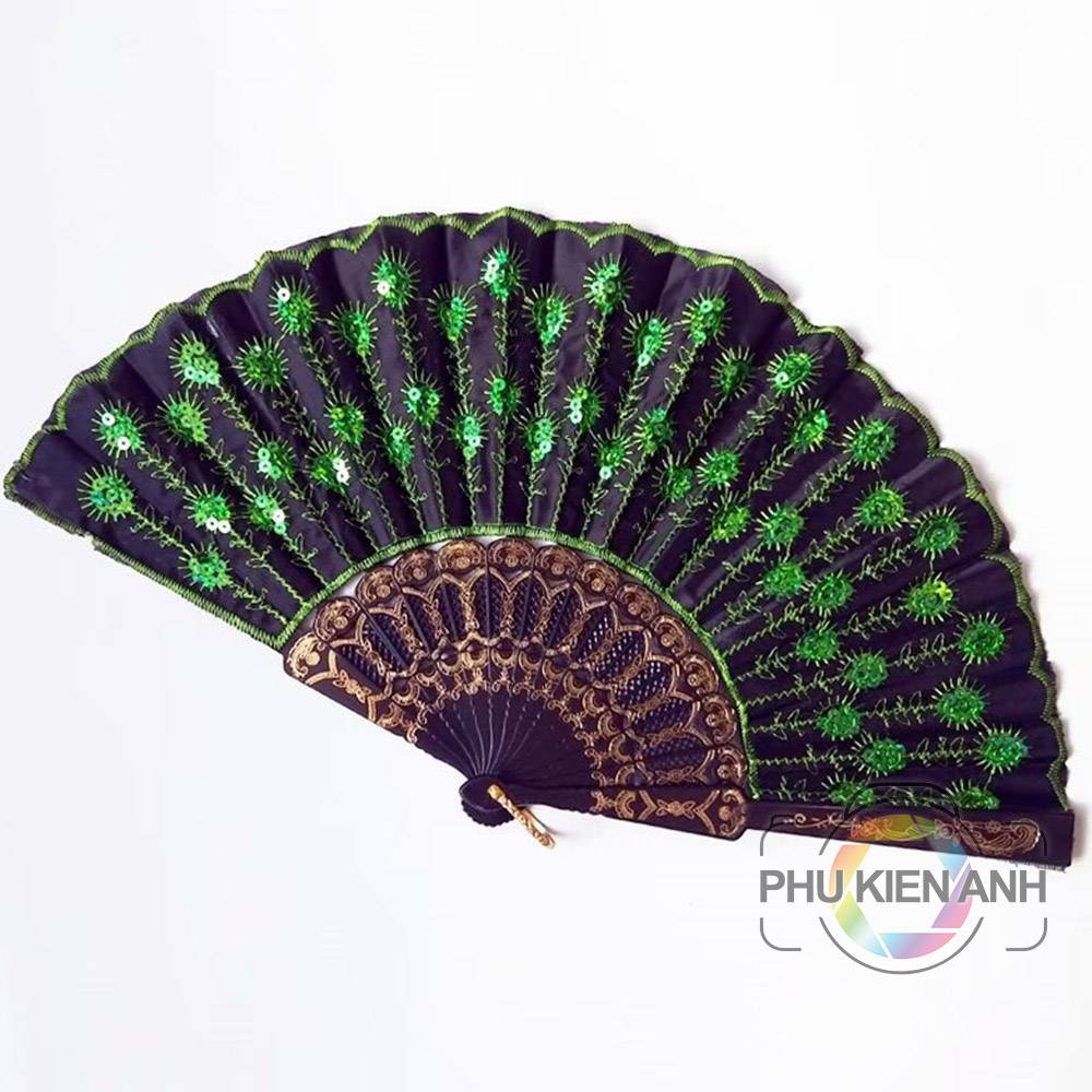 Quạt múa. trang trí, decor nhiều màu lung linh. Đính nhiều hoa văn lung linh đẹp mắt, màu sắc tùy theo nhu cầu lựa chọn của quý khách có nhiều màu khác nhau.
