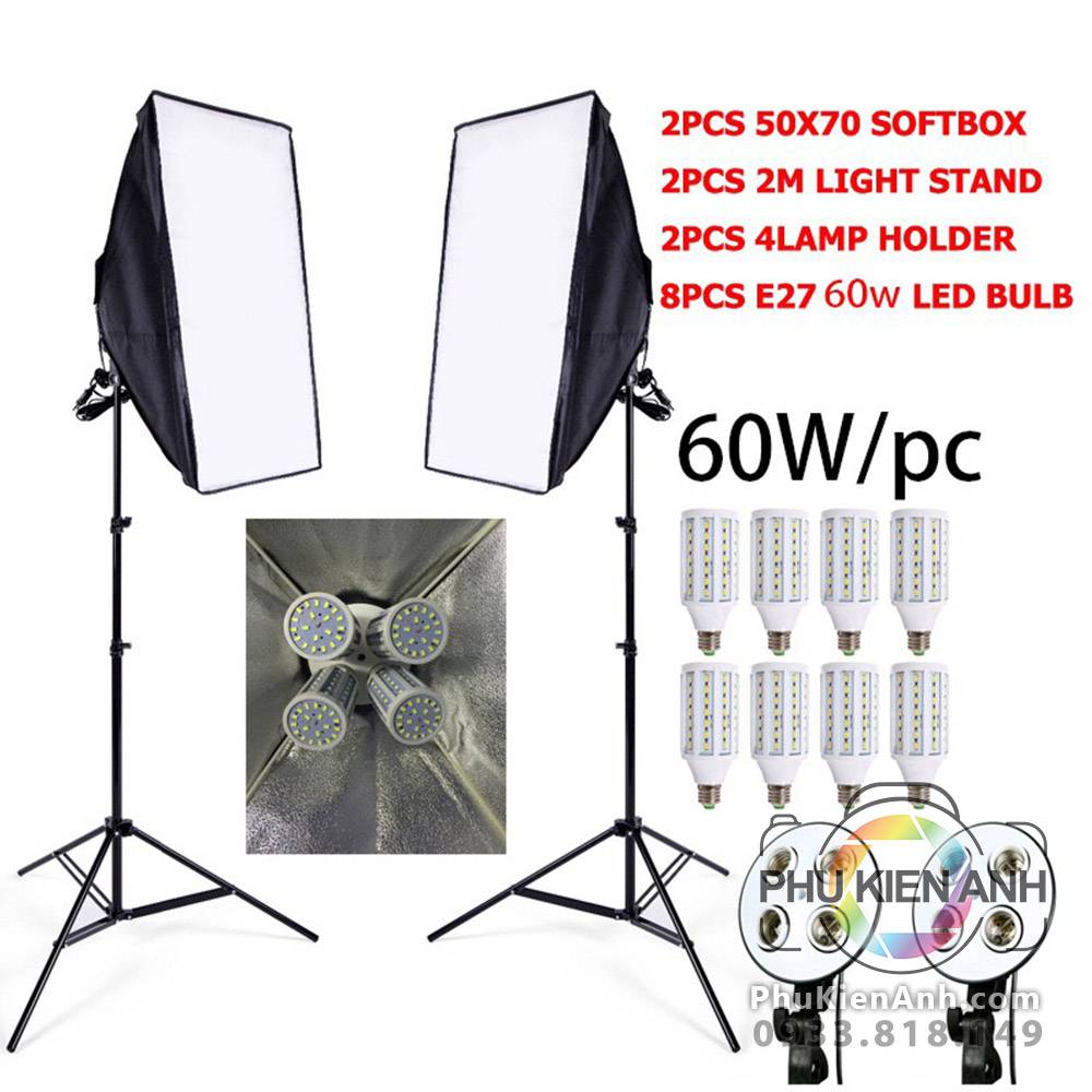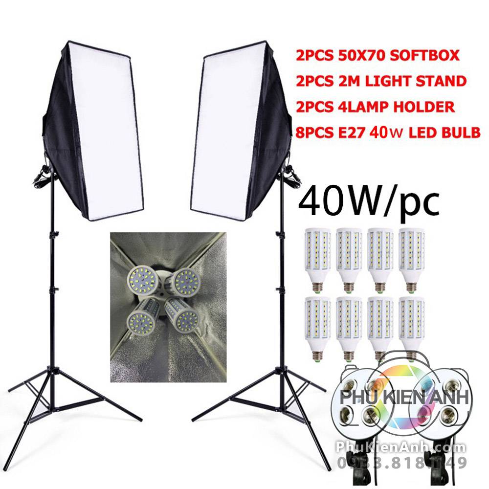 Bộ đèn combo 2 Chân đèn + 2 Softbox 4 đuôi đèn + 8 Led quay phim, livestream, chụp ảnh
